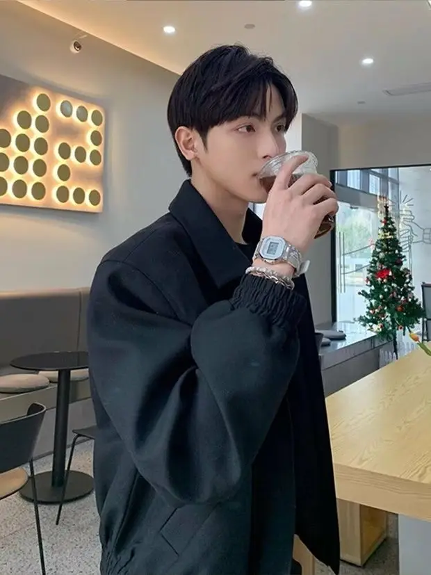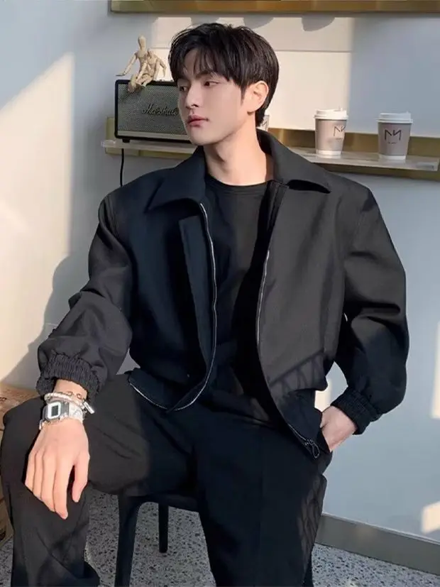 Este casaco de couro preto apresenta um estilo americano sofisticado, perfeito para quem busca um visual casual elegante.