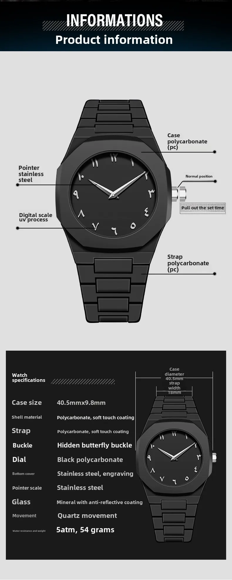 Diâmetro do mostrador: 40 a 44 mm