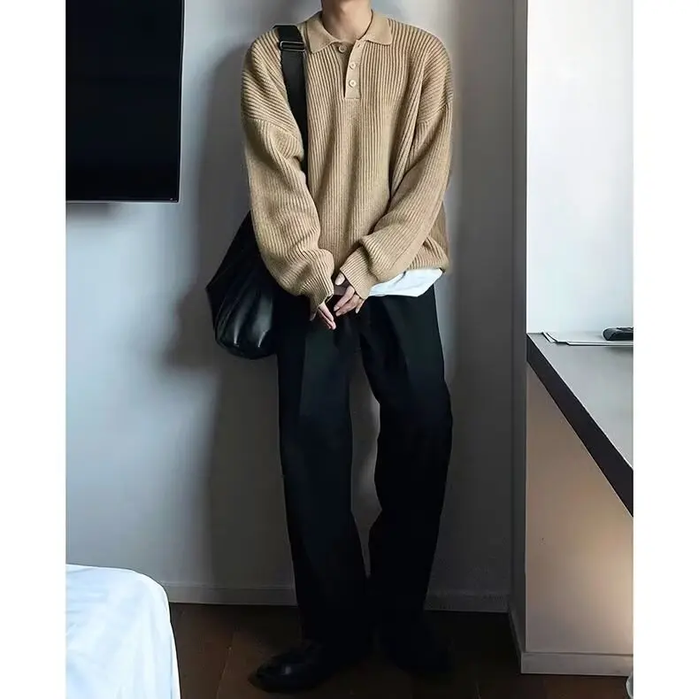 Este suéter de polo apresenta um estilo retro e oversize, perfeito para quem gosta de um look relaxado e elegante.